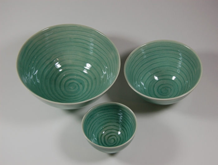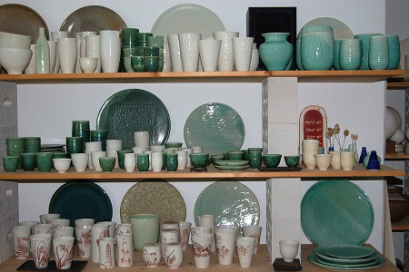 Porzellan und Steinzeug werden bei 1260 Grad gebrannt. Die Glasuren entwickle ich zum größten Teil selbst. Einige stammen aber auch aus dem Fundus meines Großvaters, des Bauhauskeramikers Otto Lindig, und seiner Schülerin Walburga Külz, der ich viele meiner Kenntnisse verdanke.